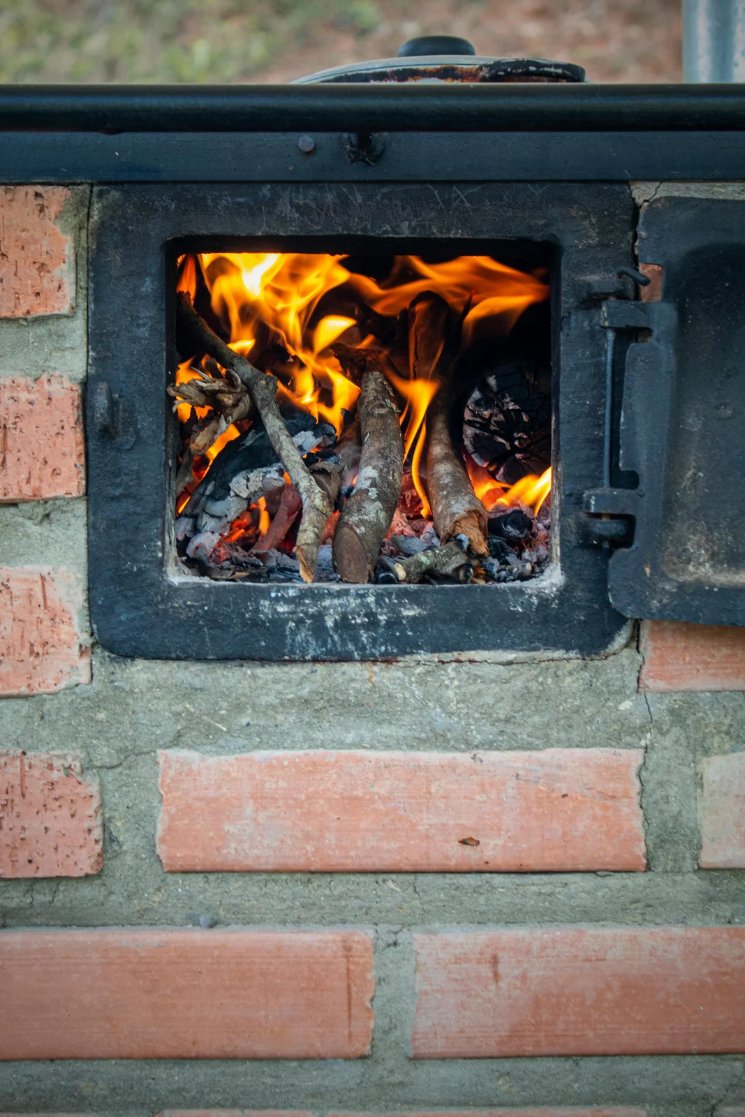 Mortar between firebricks breaks down over time. We repoint joints using high-temperature refractory mortar designed for fireboxes.